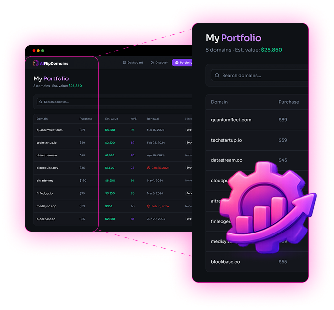 AIFlipDomains uses real comparable sales data to discover undervalued domains, score their potential, generate professional listings, and guide you through every step — from discovery to sale.